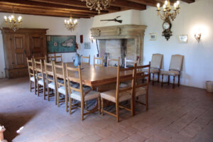 Der Cheminée-Saal ist wie ein herrschaftlicher Wohnraum Mitte des 18. Jahrhunderts mit einem Cheminée aus Hauterive-Stein als Prunkstück des Saales eingerichtet.