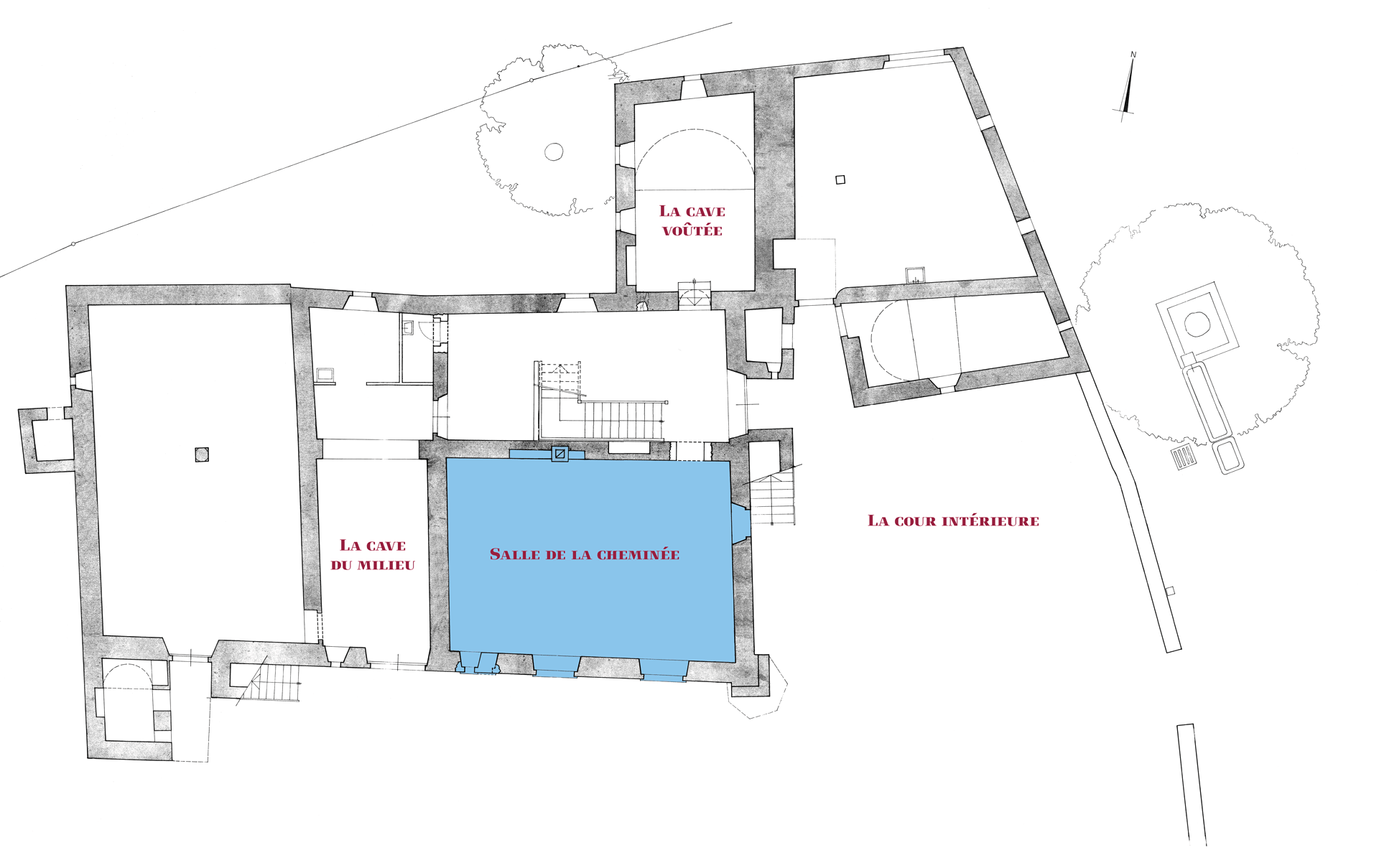 La salle de la cheminée est aménagée comme une pièce d’habitation seigneuriale du milieu du 18e siècle, avec une cheminée en pierre d’Hauterive comme pièce maîtresse de la salle.